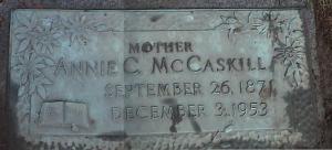 James Walter McCaskill+ b. 29 Sep 1868, d. 4 Apr 1966 Nancy Elizabeth McCaskill b. 25 Aug 1870, d. 17 Nov 1959 George Hendrix McCaskill b. 15 Nov 1872, d. 19 Sep 1960 Luther Theora McCaskill b. 25 Jan 1875, d. 3 Sep 1958 Mary Kathrine McCaskill b. 20 May 1877, d. 16 Apr 1979 John William McCaskill b. 25 Aug 1879, d. 16 May 1880 Robert Norman McCaskill b. 15 Apr 1881, d. 16 Jul 1947 Edward Pope Mccaskill b. 31 Jul 1883, d. 27 Apr 1909 Nellie McCaskill b. 10 Mar 1885, d. 29 Aug 1975 Margaret Frances McCaskill b. 13 May 1887 Thadeus McCaskill b. 19 Mar 1889, d. 10 Jun 1892 Richard Thomas McCaskill+ b. 13 Oct 1891, d. 11 Feb 1977