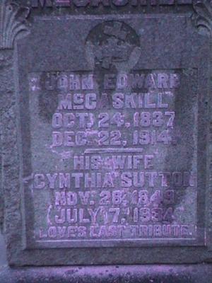 John Edward McCaskill (M) b. 14 October 1837, d. 22 December 1914 Pop-up Pedigree John Edward McCaskill was born on 14 October 1837 at Hardeman Co., TN. 1,2 He was the son of Taylor McCaskill and Nancy Slaughter. John Edward McCaskill married Cynthia Sutton on 1 May 1866. John Edward McCaskill died on 22 December 1914 at age 77.