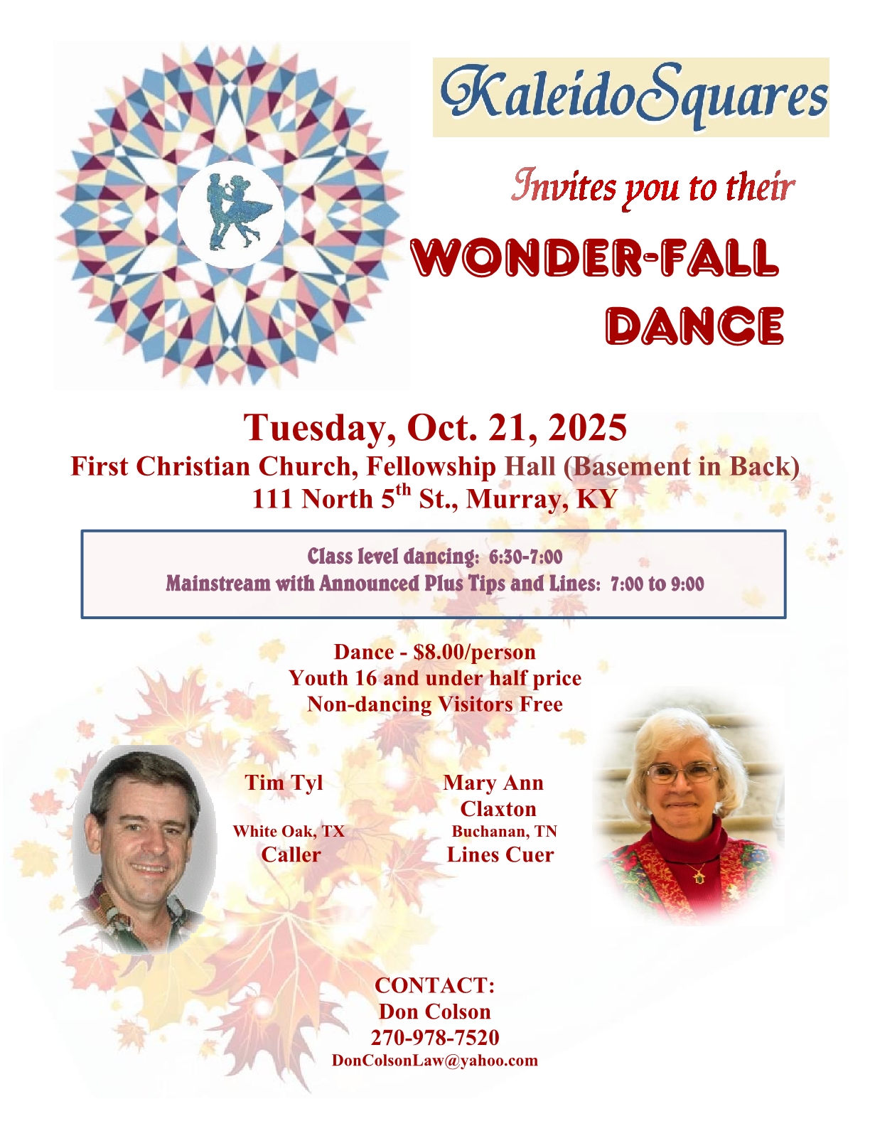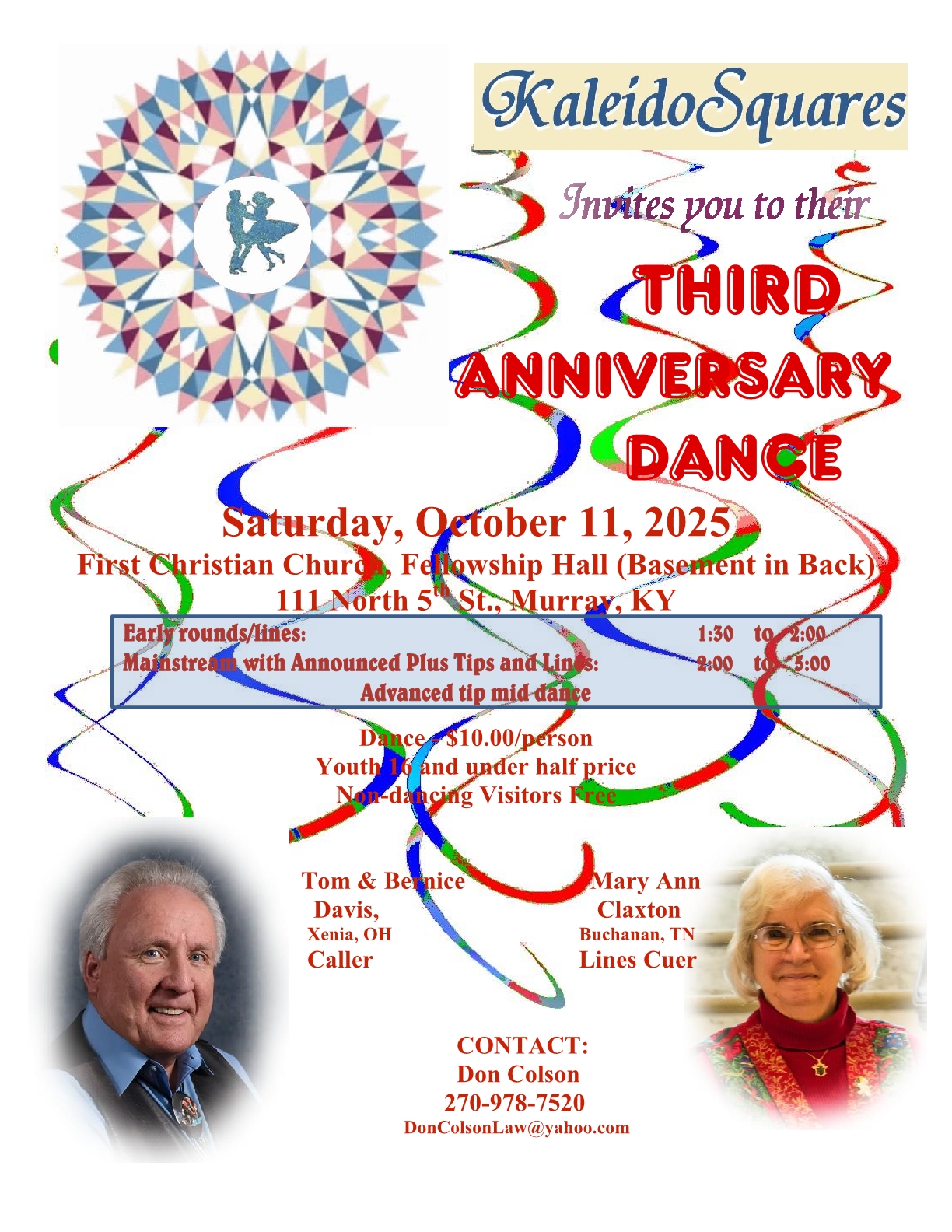 Tennessee State website for square dancing: http://www.tnsquaredance.org/ This site gives you access to all the clubs in Tennessee and other info. |